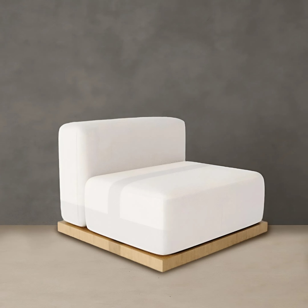 Compact yet inviting, this armless chair offers plush seating on a sturdy wooden platform. The smooth, off‑white upholstery and rounded edges create a clean, contemporary look that pairs beautifully with any décor. Perfect as an accent seat or modular piece, it delivers comfort without clutter.